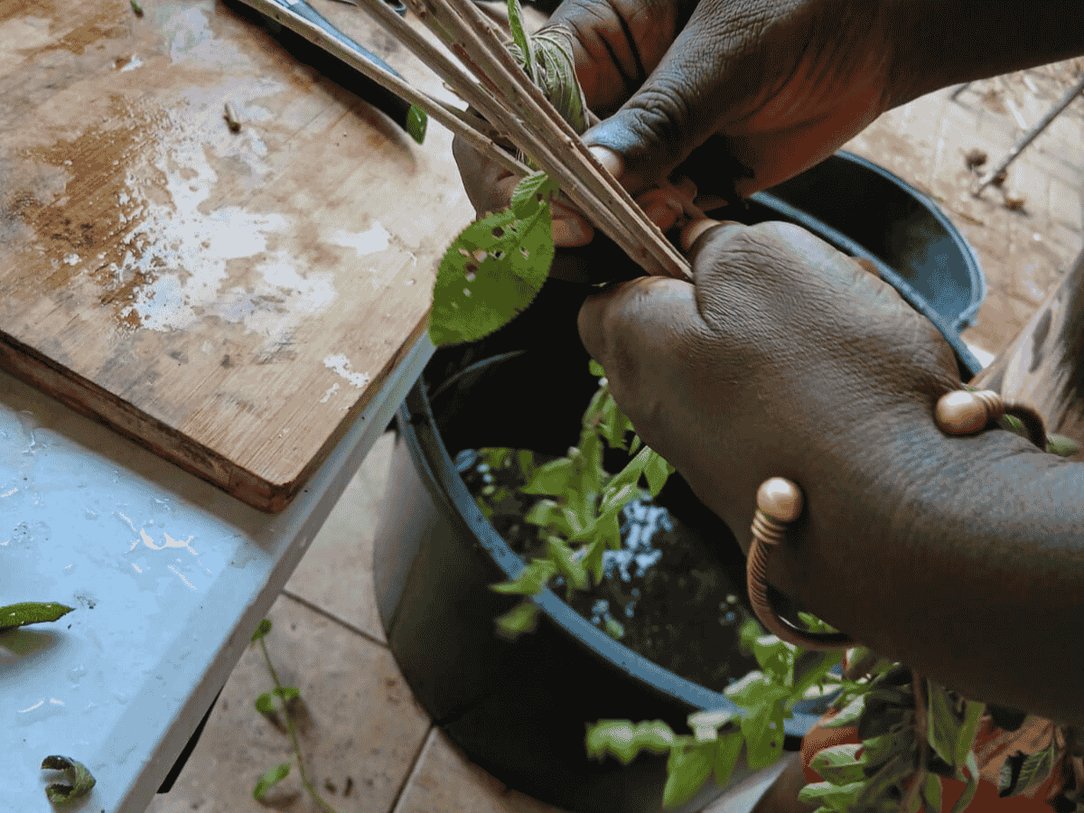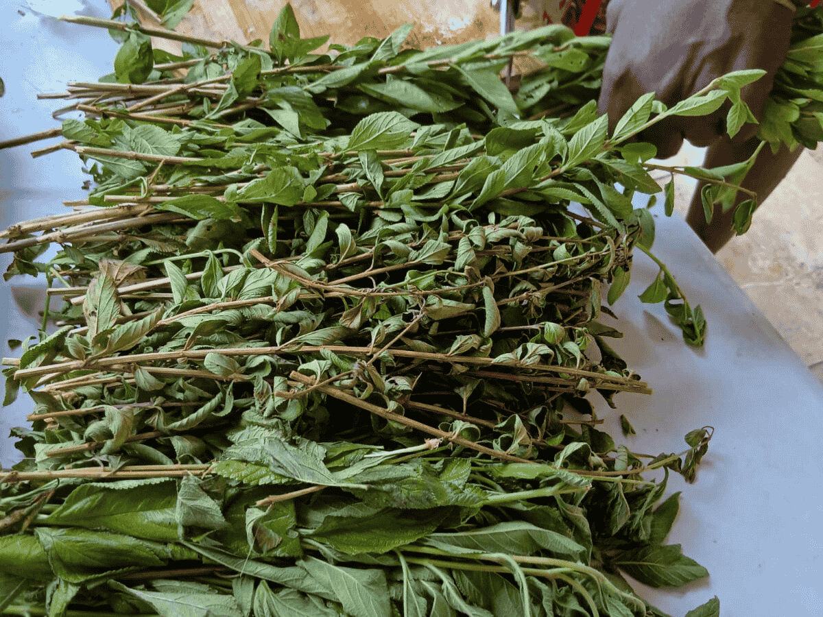 Du siehst, wie die Kräuter geerntet werden, wie die Blätter und Pflanzen verarbeitet werden, und auch ein paar kleine Alltagsmomente aus dem Dorf – Kinder beim Spielen, Frauen bei der Arbeit.