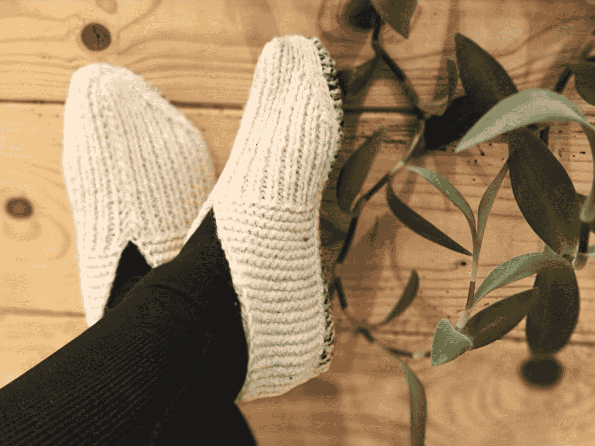 Wohlig warm, weich und richtig gemütlich – perfekt für Füße, die es zuhause gern bequem haben. Die verstärkte Sohle aus dunkler Baumwolle macht alles mit.