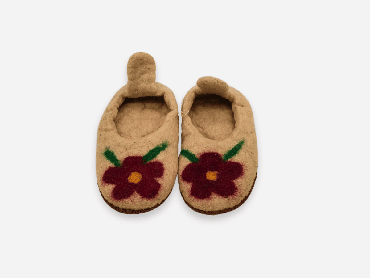 VISCRI-Hausschuhe "Papuci" Handgefertigt in Viscri – für warme Füße und gemütliche Momente. Ob beim Lesen, Kaffee trinken oder durchs Wohnzimmer tapsen – diese Hausschuhe machen alles mit.