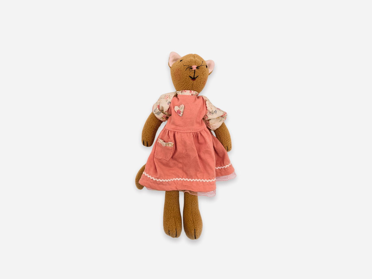 Diese handgenähte Katze ist weich, kuschelig und immer bereit für ein kleines Abenteuer – oder einfach zum Dösen auf dem Sofa.