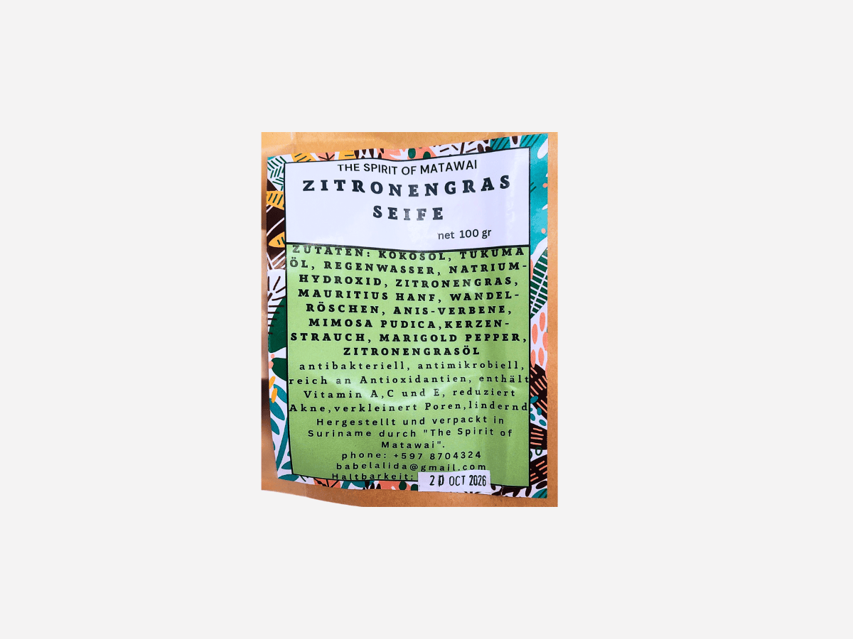 Unsere Zitronengras-Seife stammt aus dem surinamischen Regenwald und wird von den Matawai-Frauen per Hand gefertigt. Die Kräuter wachsen in unberührter Natur und werden von den Frauen gesammelt, getrocknet und zu hochwertigen Seifen verarbeitet.